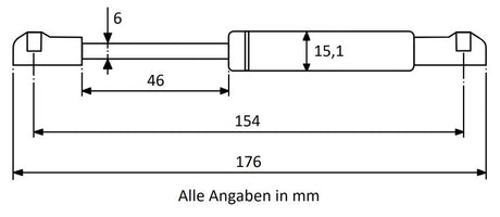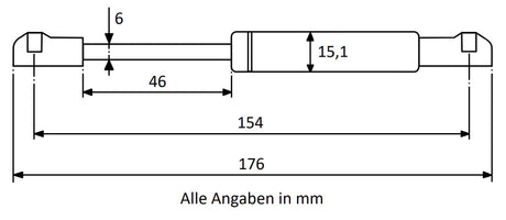 Gasdruckfeder 154mm / 46mm mit Kugelkopfaufnahme Schwarz - in vers. Ausführungen