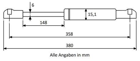 Gasdruckfeder Edelstahl mit Augenaufnahme 380mm 50N /100N
