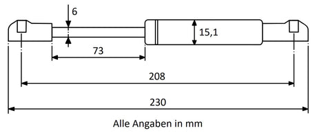Gasdruckfeder 208mm / 73mm mit Kugelkopfaufnahme Gold