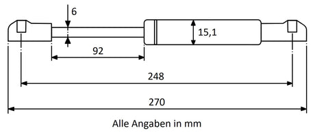 Gasdruckfeder 248mm / 92mm mit Kugelkopfaufnahme Schwarz