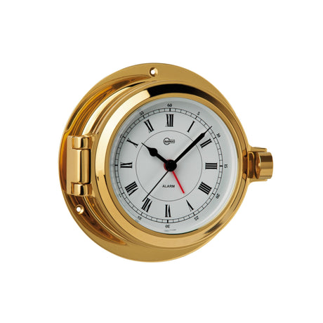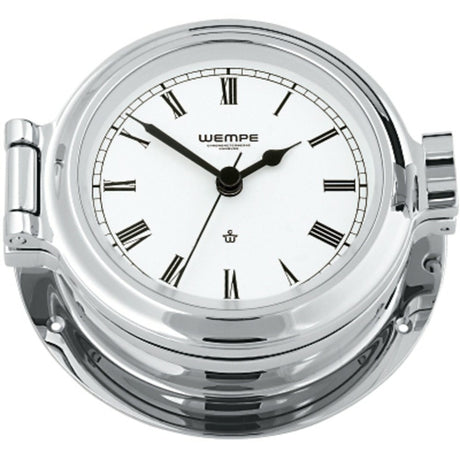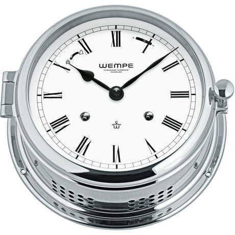 WEMPE Schiffsuhr Skiff 110mm Quarzuhrwerk, Yachtuhr aus Messing, Druckknopf-Verschluss USP